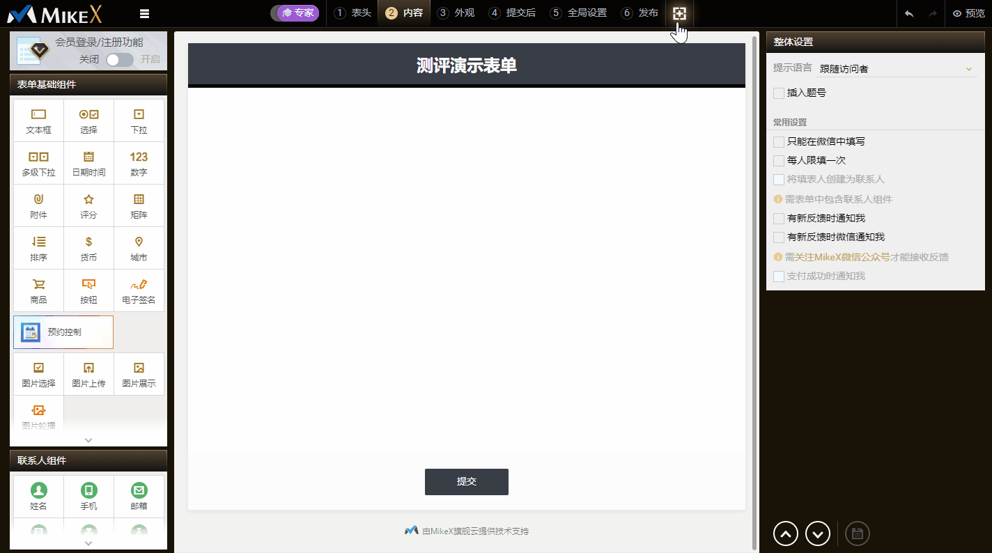 | 版本支持 | 个人简易版 | 个人标准版 | MikeCRM 企业体验版 |