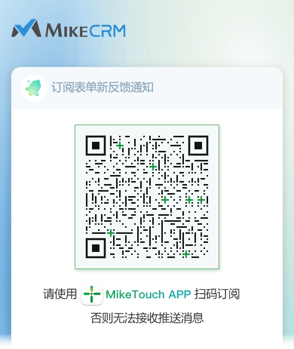 MikeTouch是麦客旗下专业提供各类群发消息及业务消息推送与接收的工具平台,免费注册即可使用。现在,不用加入组织协作,您只需安装MikeTouch APP并注册登录,简单扫码订阅,就可以实时免费接收表单的反馈提醒啦!