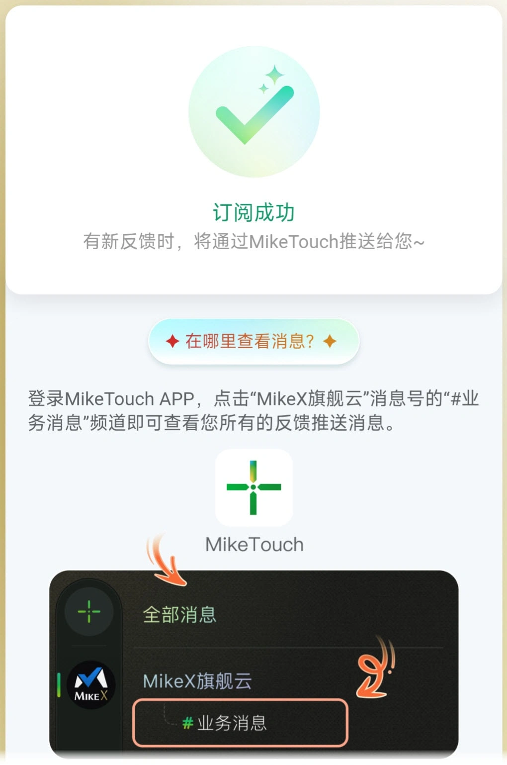 MikeTouch MikeTouch 外部人员使用MikeTouch APP接收反馈提醒